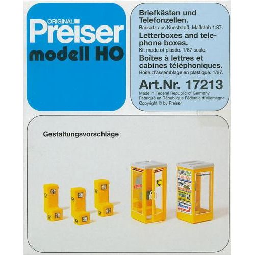 PF17213 未塗装キット 電話ボックス/公衆電話 1/87 電話ボックスH約2.7cm 2台、公衆電話大,小各3台 デカール付